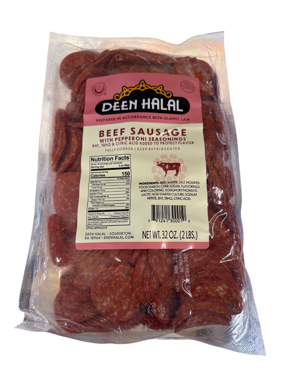 Deen halal beef sausage with pepperoni seasoning 2lb